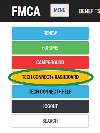 1. Login to FMCA.com and click into the Tech Connect+ Dashboard